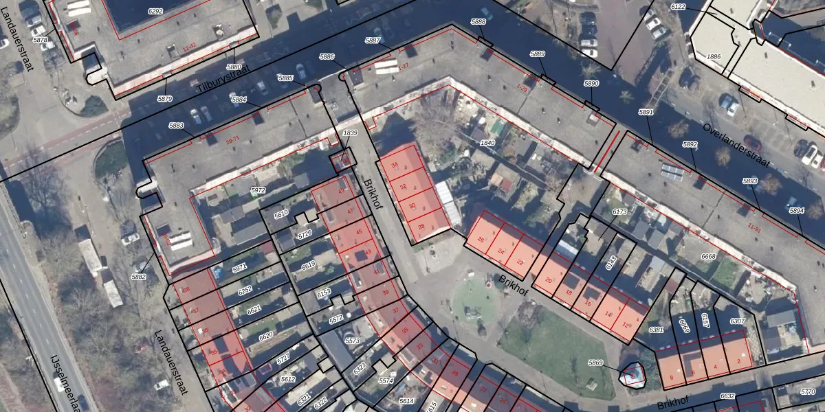 Het perceel waarop Brikhof 30 staat heeft een oppervlakte van 2346 m². Dit is een zeer groot perceel. De perceeloppervlakte wordt geregistreerd door het Kadaster. Gedetailleerde informatie over de maten van dit perceel kunt u vinden in het rapport Kadastrale kaart met maatvoering van Brikhof 30.