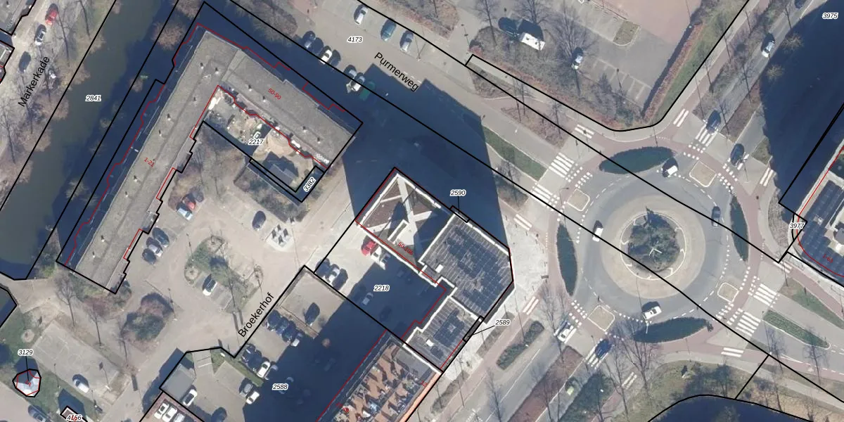 Het perceel waarop het adres ligt is PMR00-E-2218. De afkorting 'PMR00' staat voor kadastrale gemeente Purmerend. De oppervlakte van het perceel is 1218 m². Dat is groter dan gemiddeld in Purmerend, waar de gemiddelde perceeloppervlakte op 876,42 m² ligt. De grootste perceeloppervlakte in de kadastrale gemeente is 64,8 ha. De kleinste oppervlakte bedraagt 0 m². Er zijn 57 adressen aanwezig op het perceel. In de Basisregistratie Kadaster (BRK) werden de grenzen van het perceel geregistreerd op 30-05-2008.