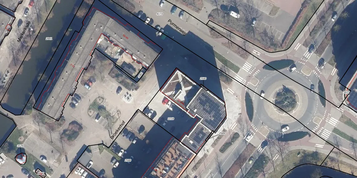 Het perceel waarop het adres ligt is PMR00-E-2218. De afkorting 'PMR00' staat voor kadastrale gemeente Purmerend. Het perceel is met 1218 m² relatief groot. Het gemiddelde ligt in de kadastrale gemeente Purmerend op 876,67 m². Het kleinste perceel in de kadastrale gemeente is 0 m² groot. De grootste perceeloppervlakte is 64,8 ha. Op het perceel liggen in totaal 57 adressen. De huidige grenzen van het perceel zijn digitaal in de Basisregistratie Kadaster (BRK) geregistreerd op 30-05-2008.