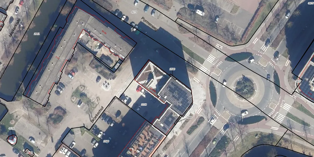 Het perceel waarop het adres ligt is PMR00-E-2218. De afkorting 'PMR00' staat voor kadastrale gemeente Purmerend. De oppervlakte van het perceel is 1218 m². Dat is groter dan gemiddeld in Purmerend, waar de gemiddelde perceeloppervlakte op 876,51 m² ligt. De grootste perceeloppervlakte in de kadastrale gemeente is 64,8 ha. De kleinste oppervlakte bedraagt 0 m². Op het perceel liggen in totaal 57 adressen. De huidige grenzen van het perceel zijn digitaal in de Basisregistratie Kadaster (BRK) geregistreerd op 30-05-2008.