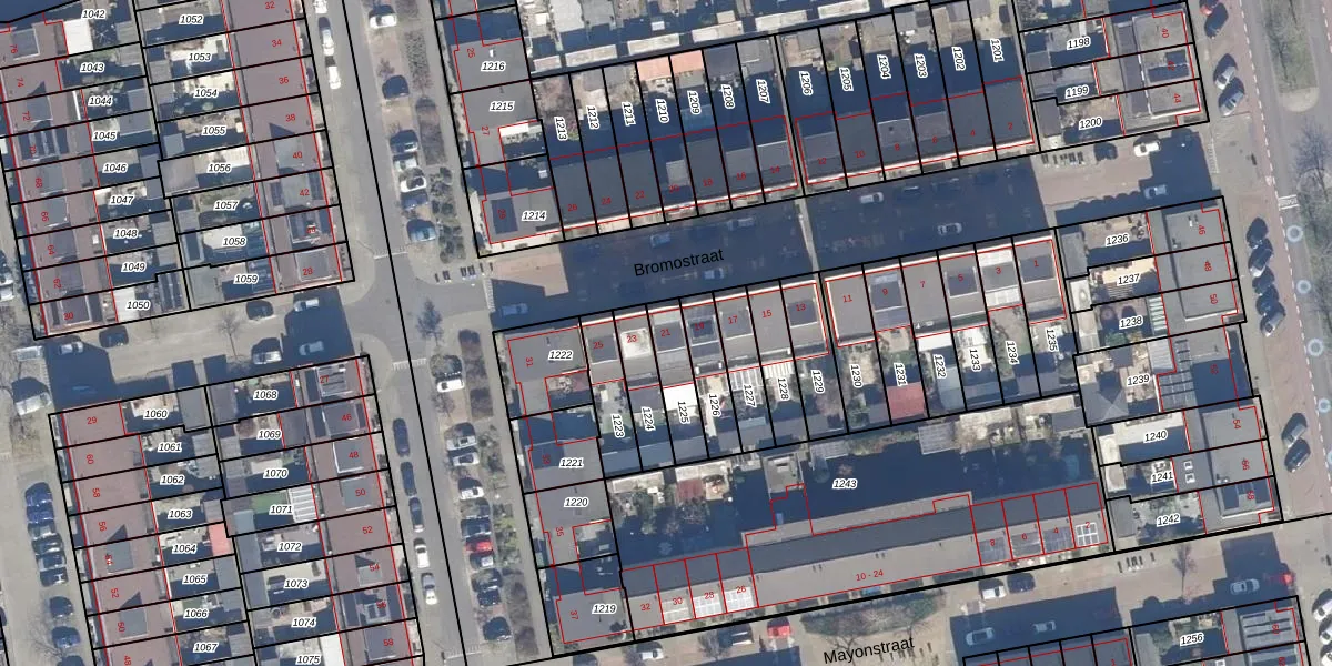 Gebruik de zoekbalk of klik op een perceel voor informatie over de adressen binnen dit perceel.