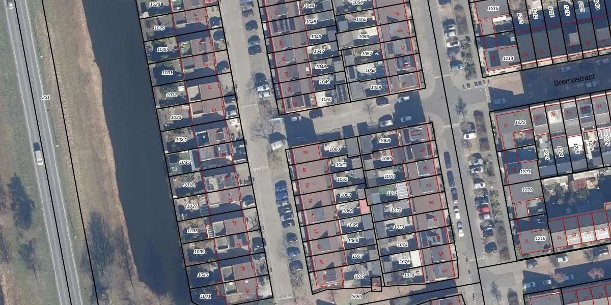 Bromostraat 29 is gelegen op kadastraal perceel PMR00N1060. Deze kadastrale aanduiding is uniek en wordt gebruikt door het Kadaster om eigendomsrechten en andere zakelijke rechten vast te leggen. Het perceel maakt onderdeel uit van de kadastrale gemeente Purmerend.