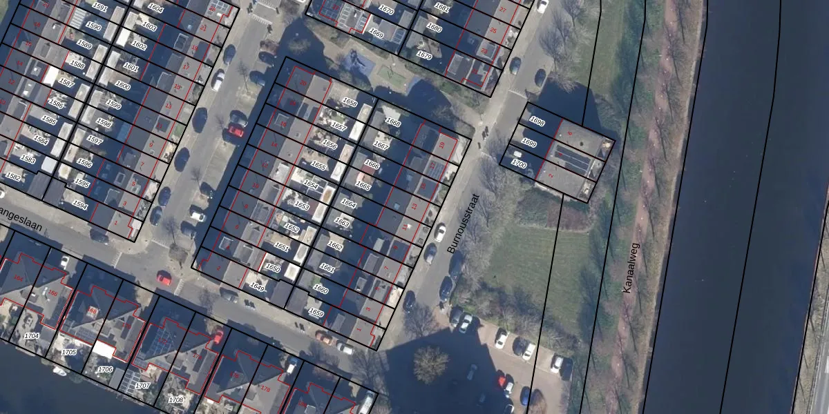 Gebruik de zoekbalk of klik op een perceel voor informatie over de adressen binnen dit perceel.