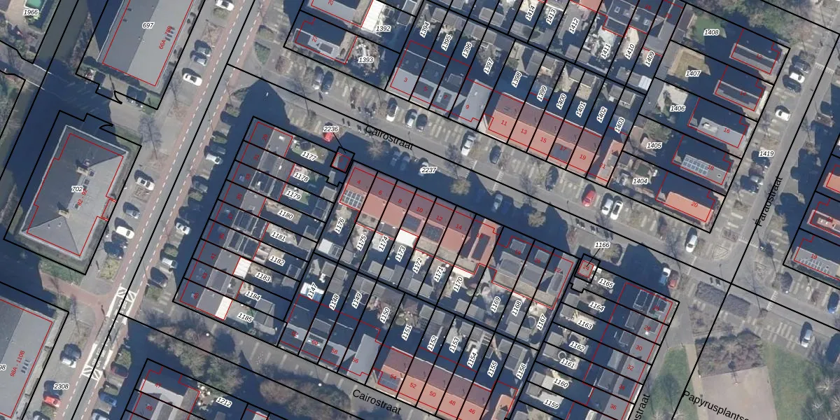 Gebruik de zoekbalk of klik op een perceel voor informatie over de adressen binnen dit perceel.