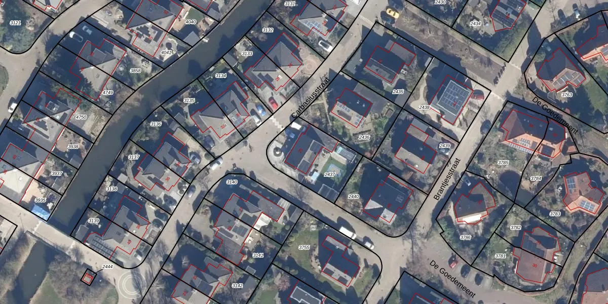 Het perceel waarop Carbasiusstraat 25 staat heeft een oppervlakte van 496 m². Dit is een groot perceel. De perceeloppervlakte wordt geregistreerd door het Kadaster. Gedetailleerde informatie over de maten van dit perceel kunt u vinden in het rapport Kadastrale kaart met maatvoering van Carbasiusstraat 25.