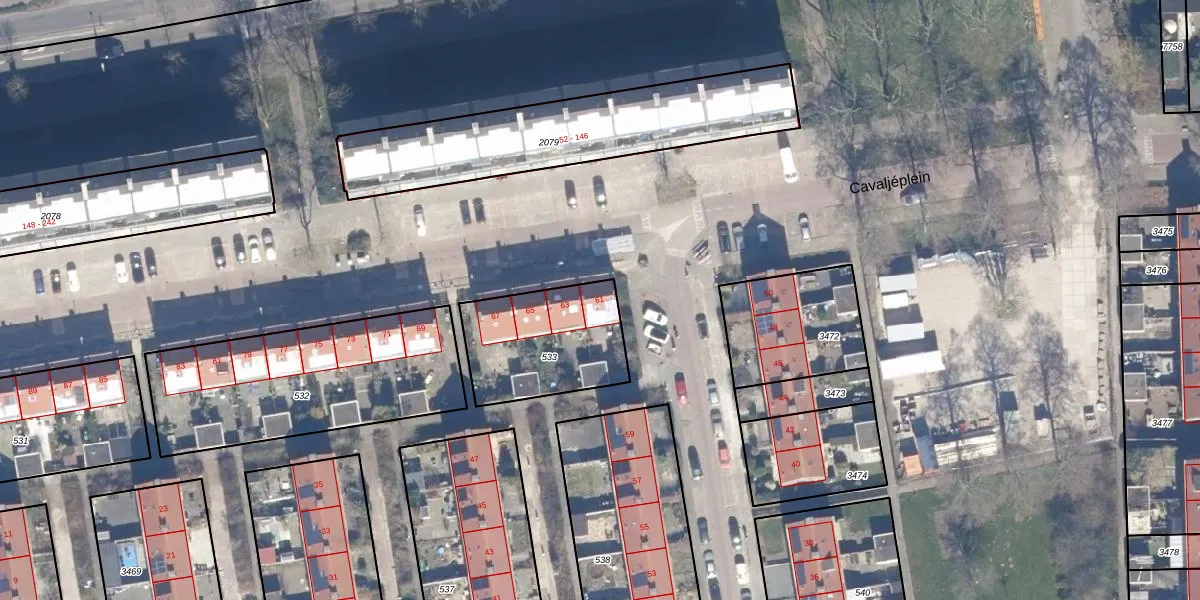 Het perceel waarop Cavaljéplein 61 staat heeft een oppervlakte van 449 m². Dit is een groot perceel. De perceeloppervlakte wordt geregistreerd door het Kadaster. Gedetailleerde informatie over de maten van dit perceel kunt u vinden in het rapport Kadastrale kaart met maatvoering van Cavaljéplein 61.