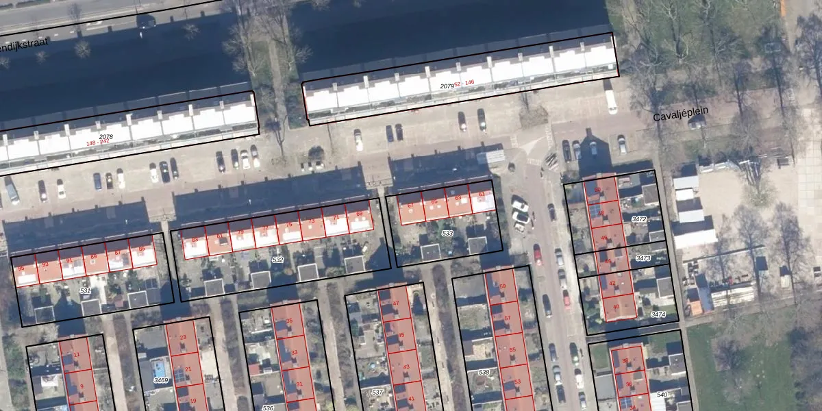 Het perceel waarop Cavaljéplein 67 staat heeft een oppervlakte van 449 m². Dit is een groot perceel. De perceeloppervlakte wordt geregistreerd door het Kadaster. Gedetailleerde informatie over de maten van dit perceel kunt u vinden in het rapport Kadastrale kaart met maatvoering van Cavaljéplein 67.