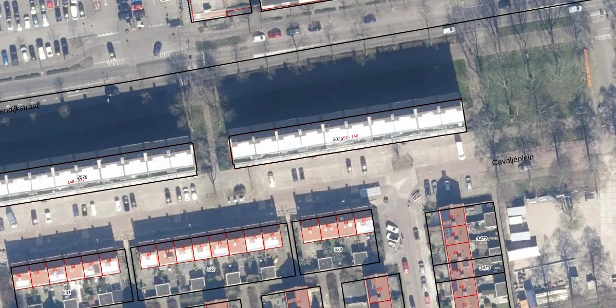 Het perceel waarop Cavaljéplein 82 staat heeft een oppervlakte van 825 m². Dit is een groot perceel. De perceeloppervlakte wordt geregistreerd door het Kadaster. Gedetailleerde informatie over de maten van dit perceel kunt u vinden in het rapport Kadastrale kaart met maatvoering van Cavaljéplein 82.