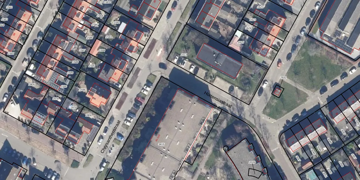 Het perceel waarop Chrysanthenstraat 41 staat heeft een oppervlakte van 2450 m². Dit is een zeer groot perceel. De perceeloppervlakte wordt geregistreerd door het Kadaster. Gedetailleerde informatie over de maten van dit perceel kunt u vinden in het rapport Kadastrale kaart met maatvoering van Chrysanthenstraat 41.
