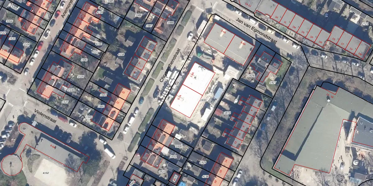 Het perceel waarop Chrysanthenstraat 5 staat heeft een oppervlakte van 2092 m². Dit is een zeer groot perceel. De perceeloppervlakte wordt geregistreerd door het Kadaster. Gedetailleerde informatie over de maten van dit perceel kunt u vinden in het rapport Kadastrale kaart met maatvoering van Chrysanthenstraat 5.