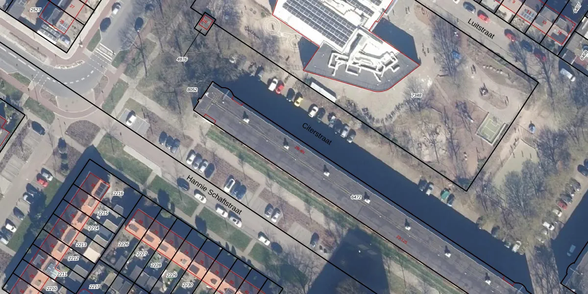 Het perceel waarop Citerstraat 2-H staat heeft een oppervlakte van 1552 m². Dit is een zeer groot perceel. De perceeloppervlakte wordt geregistreerd door het Kadaster. Gedetailleerde informatie over de maten van dit perceel kunt u vinden in het rapport Kadastrale kaart met maatvoering van Citerstraat 2-H.