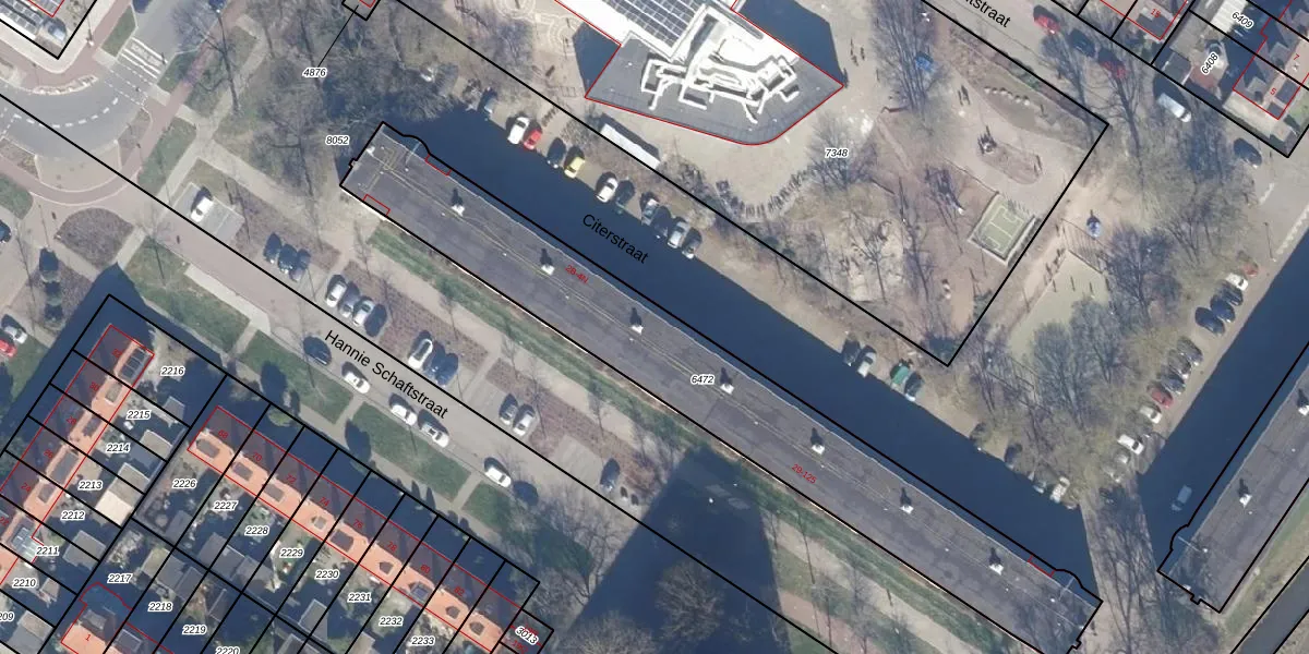 Het perceel waarop Citerstraat 2-D staat heeft een oppervlakte van 1552 m². Dit is een zeer groot perceel. De perceeloppervlakte wordt geregistreerd door het Kadaster. Gedetailleerde informatie over de maten van dit perceel kunt u vinden in het rapport Kadastrale kaart met maatvoering van Citerstraat 2-D.