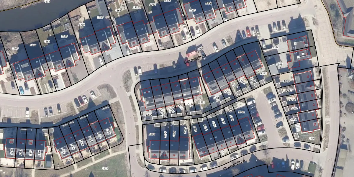 Het perceel waarop Cornwallhof 28 staat heeft een oppervlakte van 124 m². Dit is een middelgroot perceel. De perceeloppervlakte wordt geregistreerd door het Kadaster. Gedetailleerde informatie over de maten van dit perceel kunt u vinden in het rapport Kadastrale kaart met maatvoering van Cornwallhof 28.