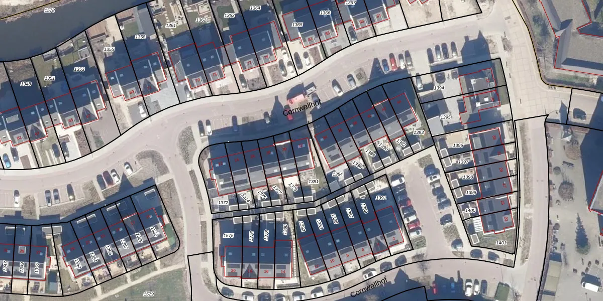 Het perceel waarop Cornwallhof 32 staat heeft een oppervlakte van 193 m². Dit is een middelgroot perceel. De perceeloppervlakte wordt geregistreerd door het Kadaster. Gedetailleerde informatie over de maten van dit perceel kunt u vinden in het rapport Kadastrale kaart met maatvoering van Cornwallhof 32.