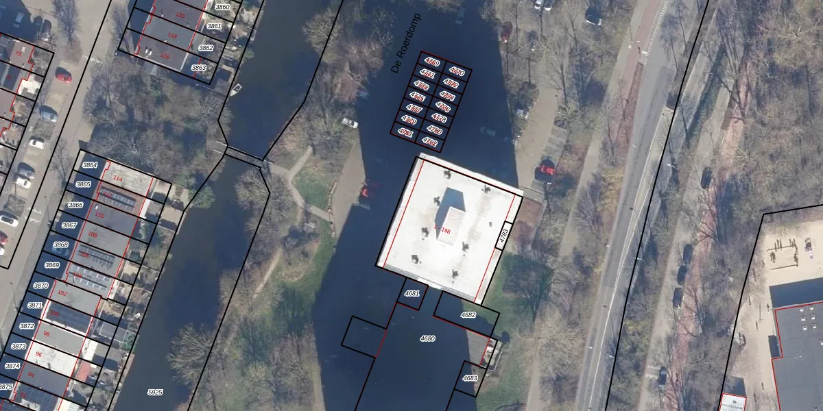 Het perceel waarop De Roerdomp 141 staat heeft een oppervlakte van 2262 m². Dit is een zeer groot perceel. De perceeloppervlakte wordt geregistreerd door het Kadaster. Gedetailleerde informatie over de maten van dit perceel kunt u vinden in het rapport Kadastrale kaart met maatvoering van De Roerdomp 141.
