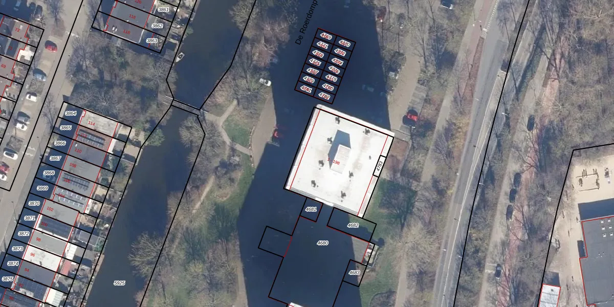 Het perceel waarop De Roerdomp 153 staat heeft een oppervlakte van 2262 m². Dit is een zeer groot perceel. De perceeloppervlakte wordt geregistreerd door het Kadaster. Gedetailleerde informatie over de maten van dit perceel kunt u vinden in het rapport Kadastrale kaart met maatvoering van De Roerdomp 153.