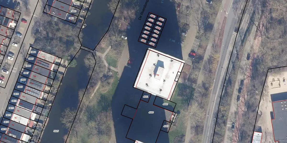 Het perceel waarop De Roerdomp 155 staat heeft een oppervlakte van 2262 m². Dit is een zeer groot perceel. De perceeloppervlakte wordt geregistreerd door het Kadaster. Gedetailleerde informatie over de maten van dit perceel kunt u vinden in het rapport Kadastrale kaart met maatvoering van De Roerdomp 155.