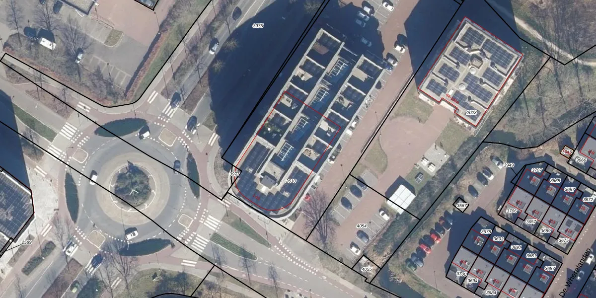 Het perceel waarop De Wherelanden 40 staat heeft een oppervlakte van 3630 m². Dit is een zeer groot perceel. De perceeloppervlakte wordt geregistreerd door het Kadaster. Gedetailleerde informatie over de maten van dit perceel kunt u vinden in het rapport Kadastrale kaart met maatvoering van De Wherelanden 40.