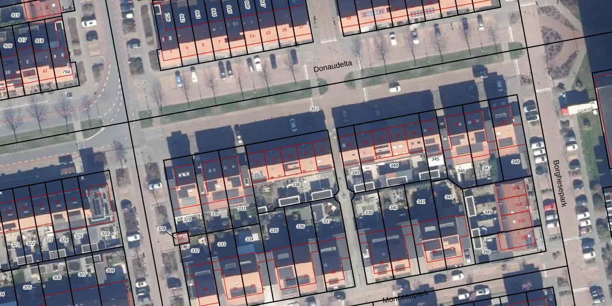 Het perceel waarop Donaudelta 12 staat heeft een oppervlakte van 605 m². Dit is een groot perceel. De perceeloppervlakte wordt geregistreerd door het Kadaster. Gedetailleerde informatie over de maten van dit perceel kunt u vinden in het rapport Kadastrale kaart met maatvoering van Donaudelta 12.