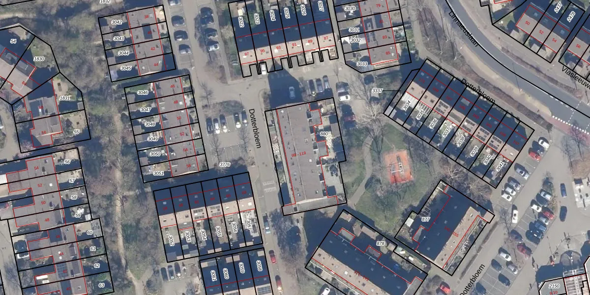 Het perceel waarop Dotterbloem 103 staat heeft een oppervlakte van 818 m². Dit is een groot perceel. De perceeloppervlakte wordt geregistreerd door het Kadaster. Gedetailleerde informatie over de maten van dit perceel kunt u vinden in het rapport Kadastrale kaart met maatvoering van Dotterbloem 103.