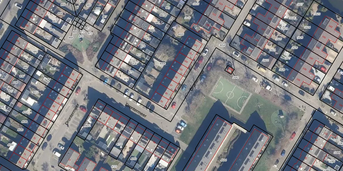 Het perceel waarop Drontermeer 97 staat heeft een oppervlakte van 897 m². Dit is een groot perceel. De perceeloppervlakte wordt geregistreerd door het Kadaster. Gedetailleerde informatie over de maten van dit perceel kunt u vinden in het rapport Kadastrale kaart met maatvoering van Drontermeer 97.