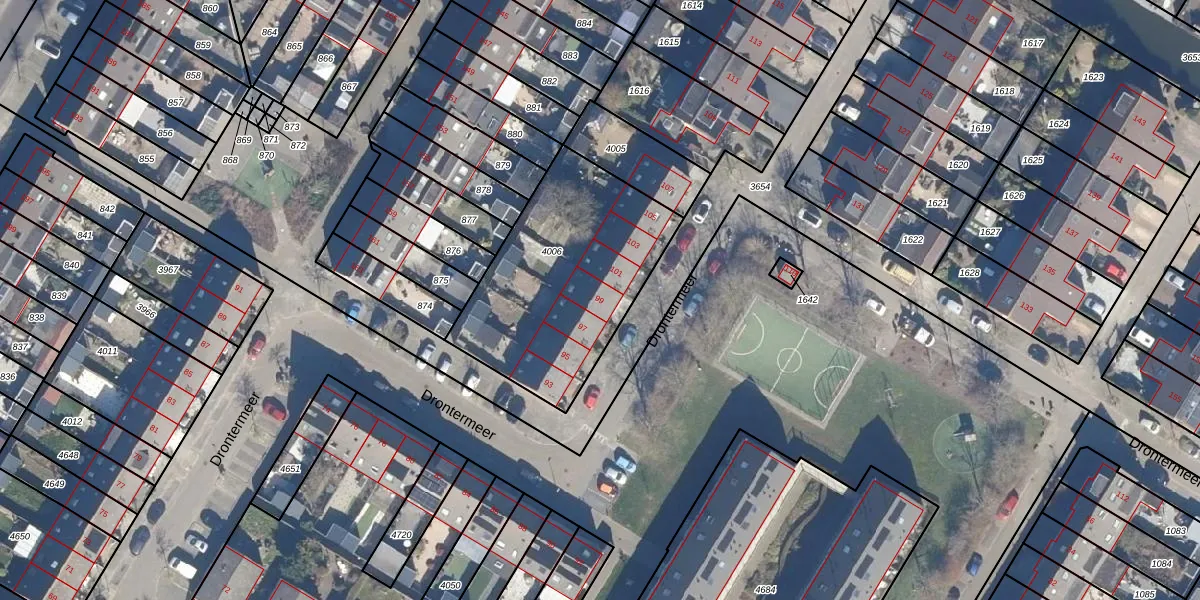 Het perceel waarop Drontermeer 99 staat heeft een oppervlakte van 897 m². Dit is een groot perceel. De perceeloppervlakte wordt geregistreerd door het Kadaster. Gedetailleerde informatie over de maten van dit perceel kunt u vinden in het rapport Kadastrale kaart met maatvoering van Drontermeer 99.