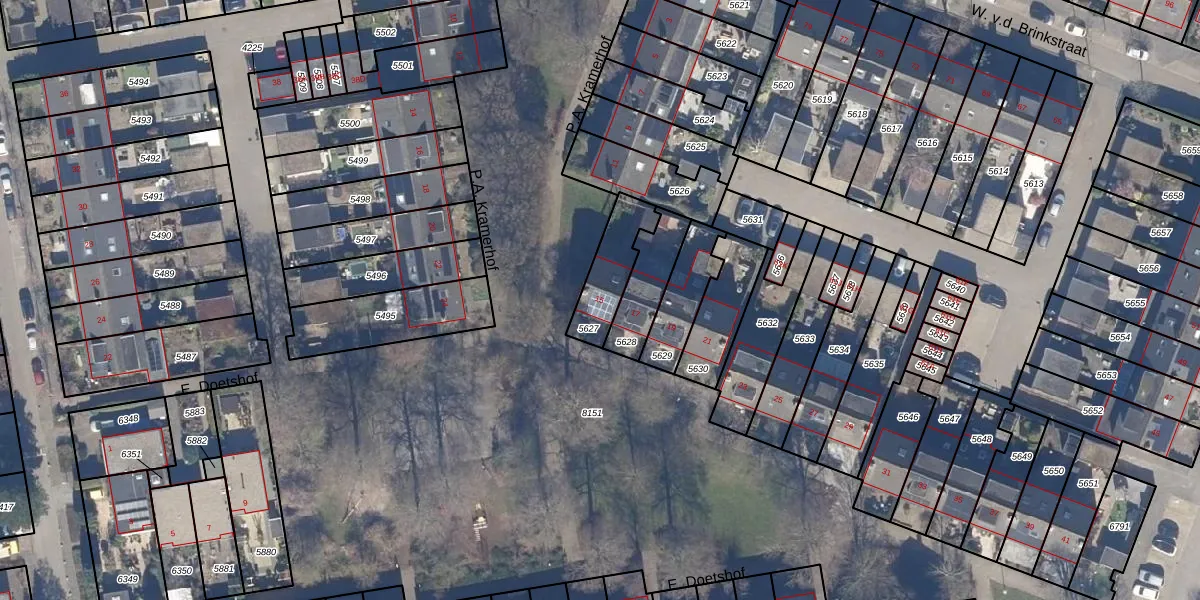 Gebruik de zoekbalk of klik op een perceel voor informatie over de adressen binnen dit perceel.