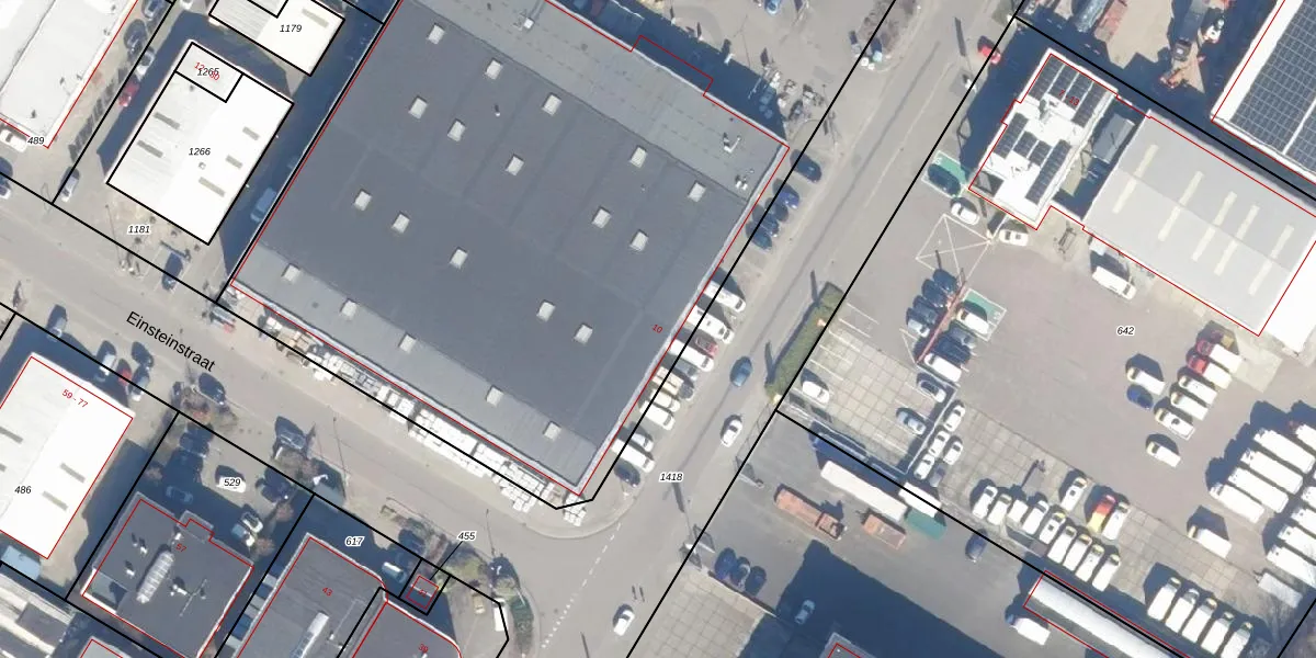 Het perceel waarop Einsteinstraat 10 staat heeft een oppervlakte van 6333 m². Dit is een zeer groot perceel. De perceeloppervlakte wordt geregistreerd door het Kadaster. Gedetailleerde informatie over de maten van dit perceel kunt u vinden in het rapport Kadastrale kaart met maatvoering van Einsteinstraat 10.