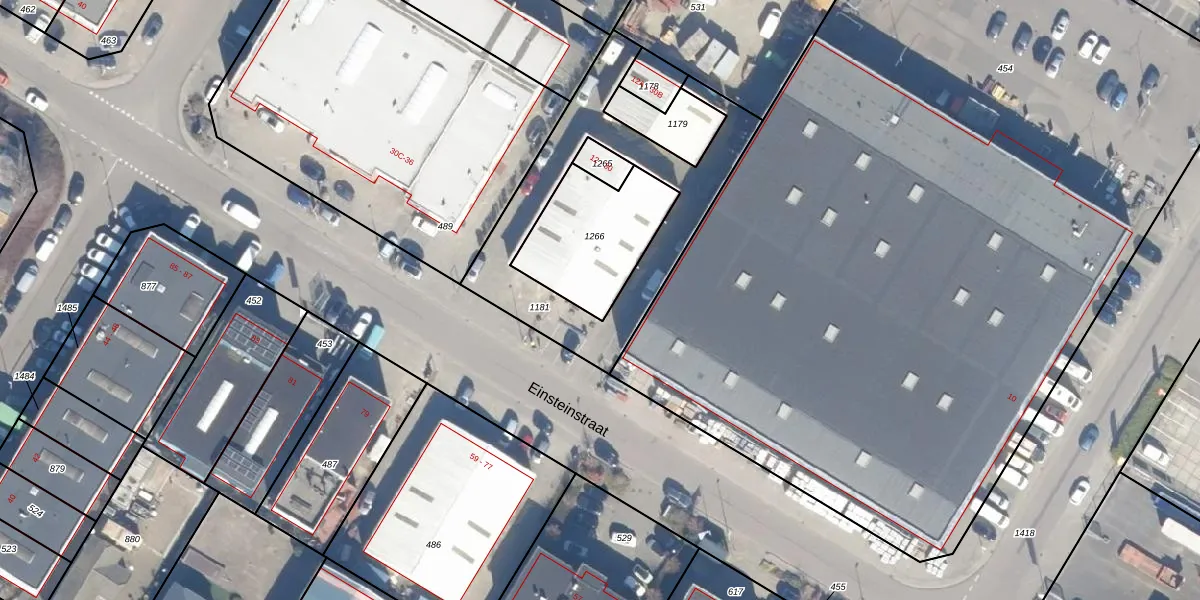 Het perceel waarop Einsteinstraat 18 staat heeft een oppervlakte van 404 m². Dit is een groot perceel. De perceeloppervlakte wordt geregistreerd door het Kadaster. Gedetailleerde informatie over de maten van dit perceel kunt u vinden in het rapport Kadastrale kaart met maatvoering van Einsteinstraat 18.