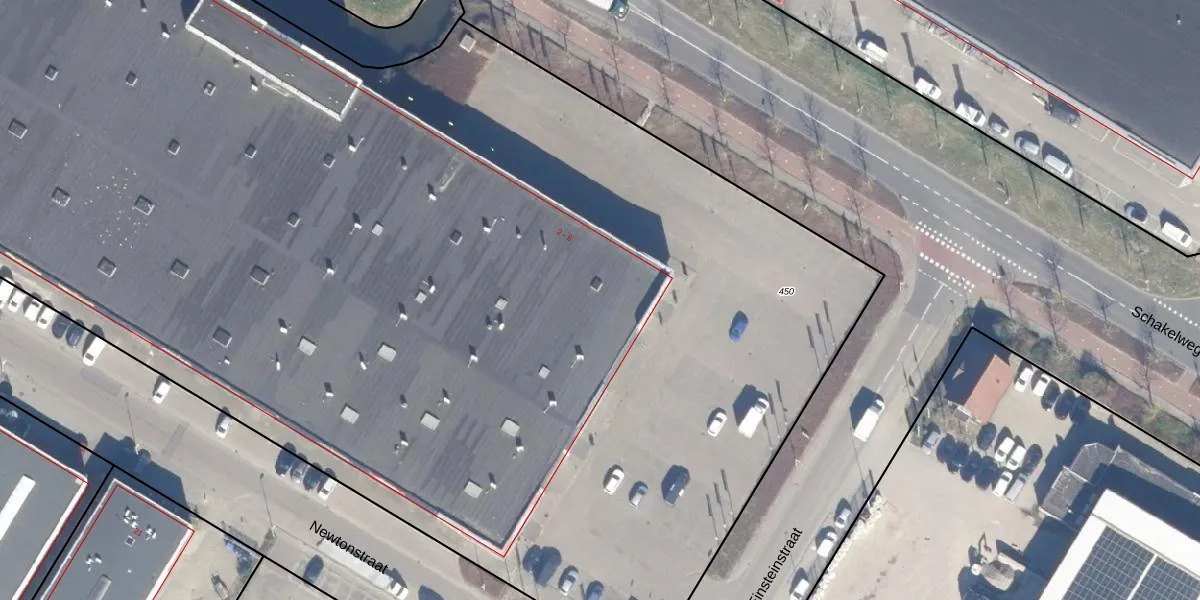 Het perceel waarop Einsteinstraat 2 staat heeft een oppervlakte van 1,2 ha. Dit is een zeer groot perceel. De perceeloppervlakte wordt geregistreerd door het Kadaster. Gedetailleerde informatie over de maten van dit perceel kunt u vinden in het rapport Kadastrale kaart met maatvoering van Einsteinstraat 2.