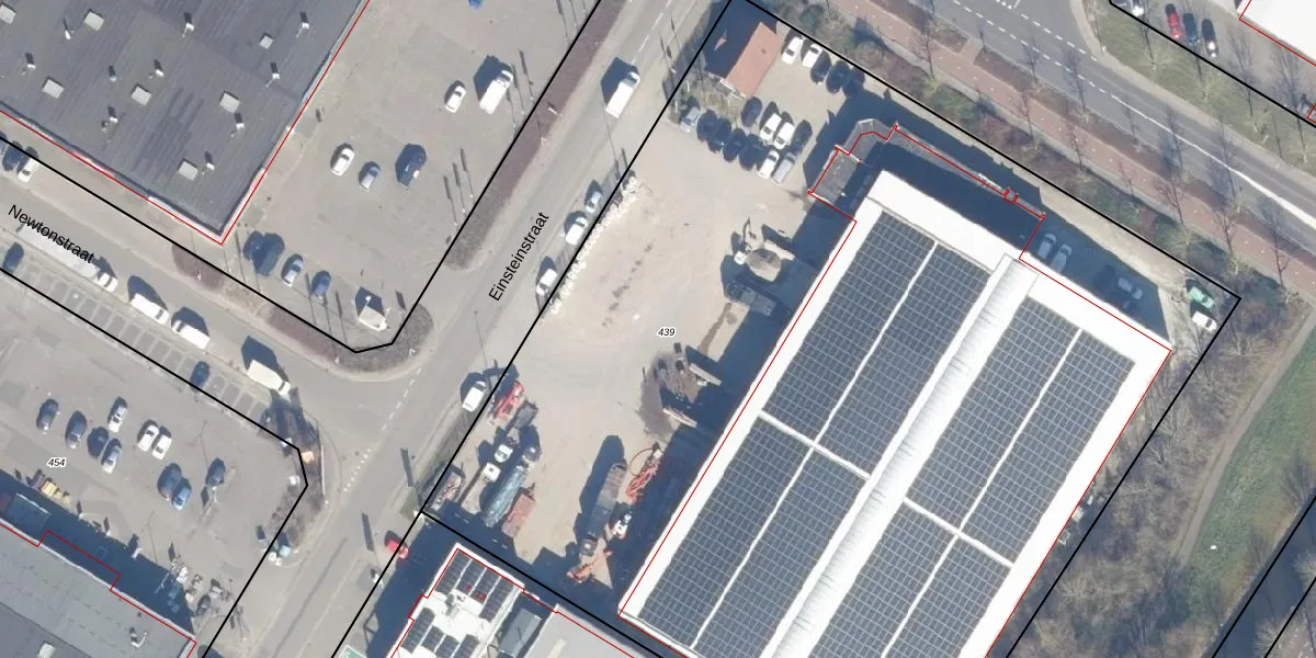 Het perceel waarop Einsteinstraat 3-B staat heeft een oppervlakte van 8150 m². Dit is een zeer groot perceel. De perceeloppervlakte wordt geregistreerd door het Kadaster. Gedetailleerde informatie over de maten van dit perceel kunt u vinden in het rapport Kadastrale kaart met maatvoering van Einsteinstraat 3-B.