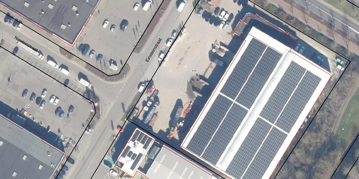 Het perceel waarop Einsteinstraat 3-W staat heeft een oppervlakte van 8150 m². Dit is een zeer groot perceel. De perceeloppervlakte wordt geregistreerd door het Kadaster. Gedetailleerde informatie over de maten van dit perceel kunt u vinden in het rapport Kadastrale kaart met maatvoering van Einsteinstraat 3-W.