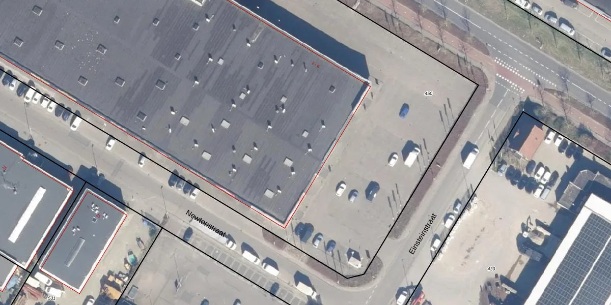 Het perceel waarop Einsteinstraat 4 staat heeft een oppervlakte van 1,2 ha. Dit is een zeer groot perceel. De perceeloppervlakte wordt geregistreerd door het Kadaster. Gedetailleerde informatie over de maten van dit perceel kunt u vinden in het rapport Kadastrale kaart met maatvoering van Einsteinstraat 4.