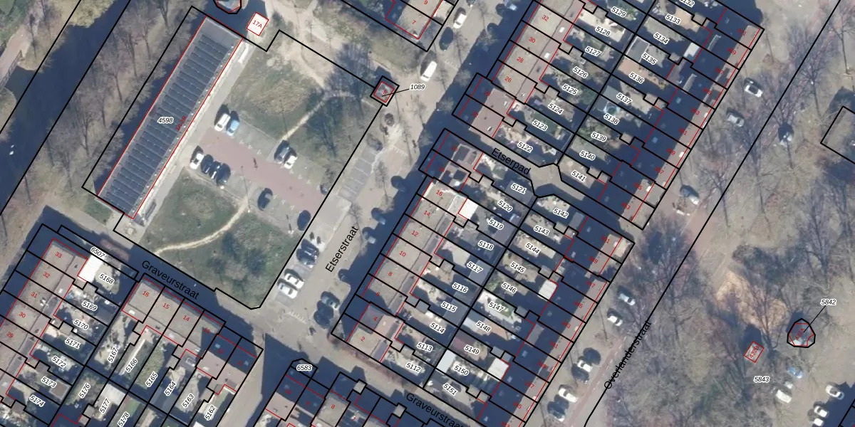 Het perceel waarop Etserstraat 14 staat heeft een oppervlakte van 136 m². Dit is een middelgroot perceel. De perceeloppervlakte wordt geregistreerd door het Kadaster. Gedetailleerde informatie over de maten van dit perceel kunt u vinden in het rapport Kadastrale kaart met maatvoering van Etserstraat 14.
