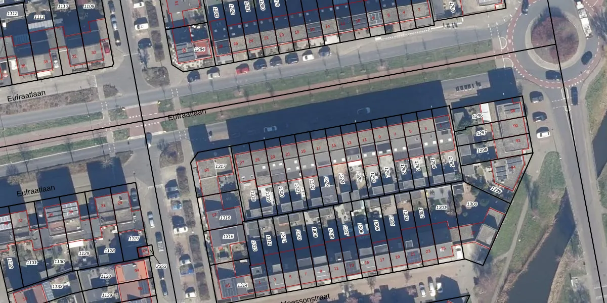 Eufraatlaan 19 is gelegen op kadastraal perceel PMR00N1322. Deze kadastrale aanduiding is uniek en wordt gebruikt door het Kadaster om eigendomsrechten en andere zakelijke rechten vast te leggen. Het perceel maakt onderdeel uit van de kadastrale gemeente Purmerend.