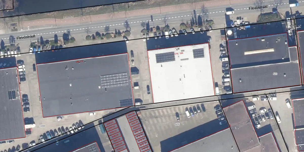 Het perceel waarop Flevostraat 178 staat heeft een oppervlakte van 1,1 ha. Dit is een zeer groot perceel. De perceeloppervlakte wordt geregistreerd door het Kadaster. Gedetailleerde informatie over de maten van dit perceel kunt u vinden in het rapport Kadastrale kaart met maatvoering van Flevostraat 178.