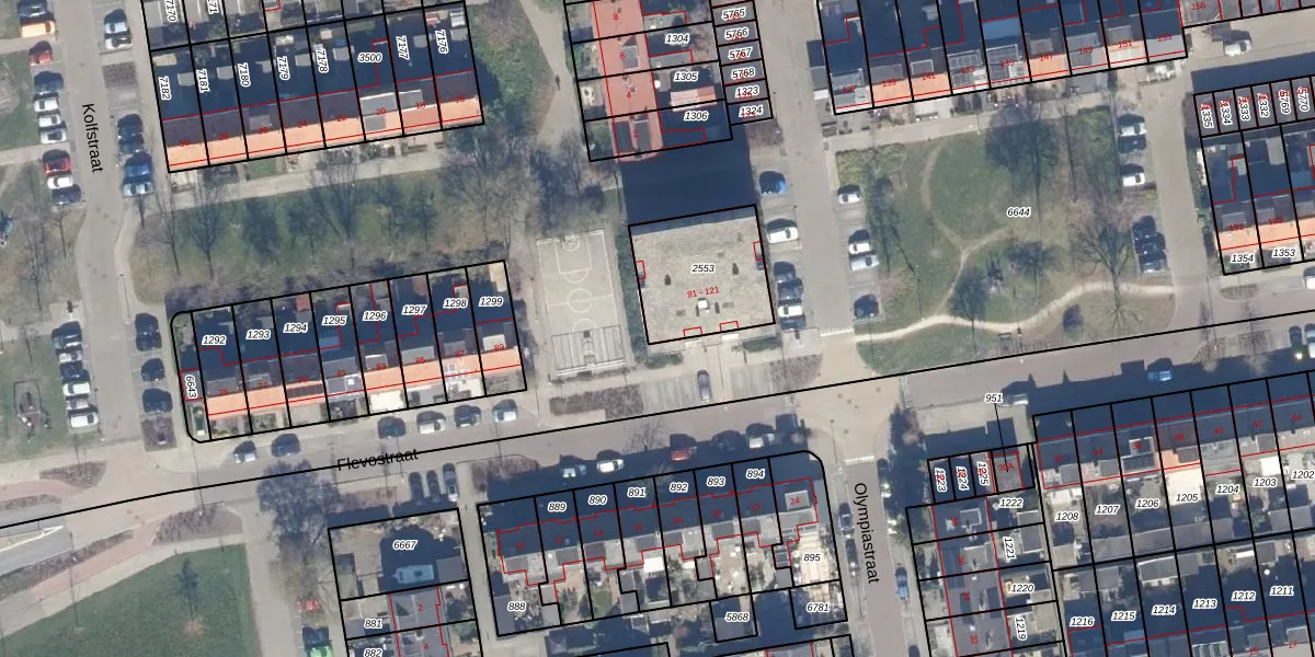 Het perceel waarop Flevostraat 93 staat heeft een oppervlakte van 356 m². Dit is een groot perceel. De perceeloppervlakte wordt geregistreerd door het Kadaster. Gedetailleerde informatie over de maten van dit perceel kunt u vinden in het rapport Kadastrale kaart met maatvoering van Flevostraat 93.