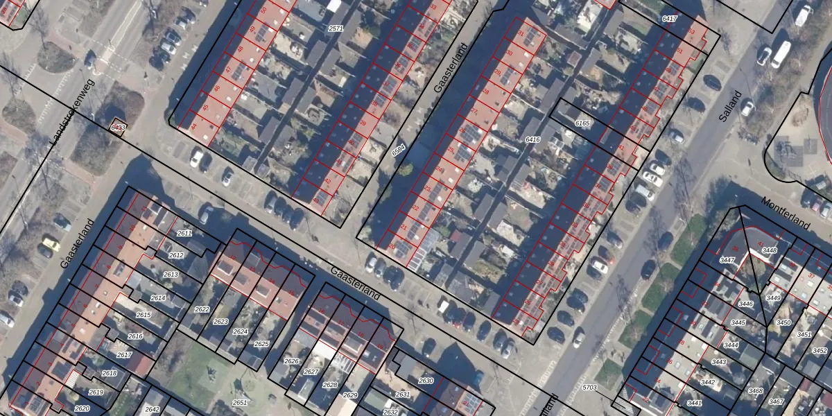 Het perceel waarop Gaasterland 22 staat heeft een oppervlakte van 4082 m². Dit is een zeer groot perceel. De perceeloppervlakte wordt geregistreerd door het Kadaster. Gedetailleerde informatie over de maten van dit perceel kunt u vinden in het rapport Kadastrale kaart met maatvoering van Gaasterland 22.