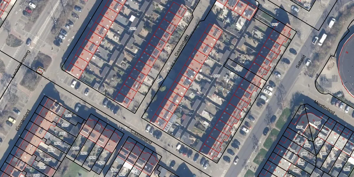 Het perceel waarop Gaasterland 24 staat heeft een oppervlakte van 4082 m². Dit is een zeer groot perceel. De perceeloppervlakte wordt geregistreerd door het Kadaster. Gedetailleerde informatie over de maten van dit perceel kunt u vinden in het rapport Kadastrale kaart met maatvoering van Gaasterland 24.