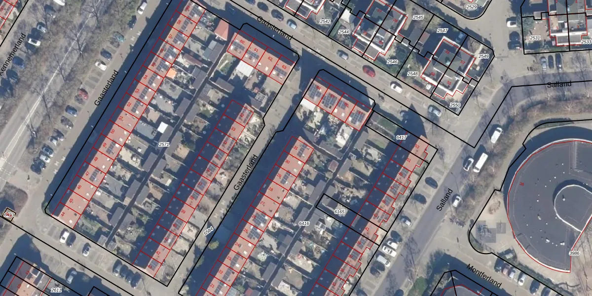 Het perceel waarop Gaasterland 31 staat heeft een oppervlakte van 4082 m². Dit is een zeer groot perceel. De perceeloppervlakte wordt geregistreerd door het Kadaster. Gedetailleerde informatie over de maten van dit perceel kunt u vinden in het rapport Kadastrale kaart met maatvoering van Gaasterland 31.