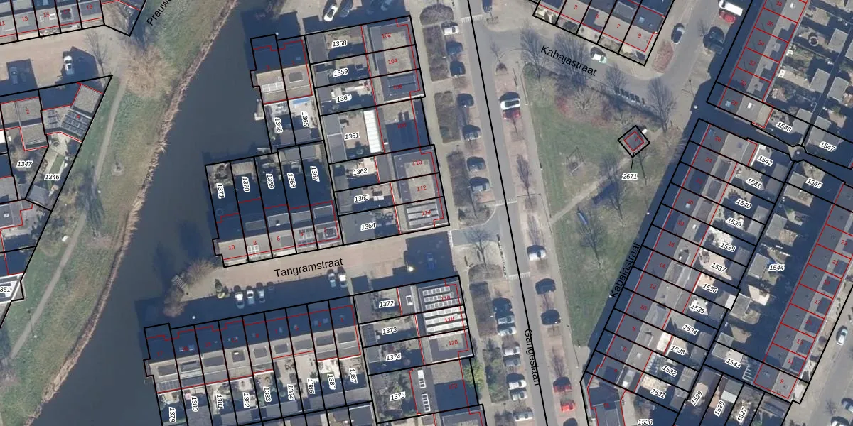 Het perceel waarop Gangeslaan 114 staat heeft een oppervlakte van 174 m². Dit is een middelgroot perceel. De perceeloppervlakte wordt geregistreerd door het Kadaster. Gedetailleerde informatie over de maten van dit perceel kunt u vinden in het rapport Kadastrale kaart met maatvoering van Gangeslaan 114.