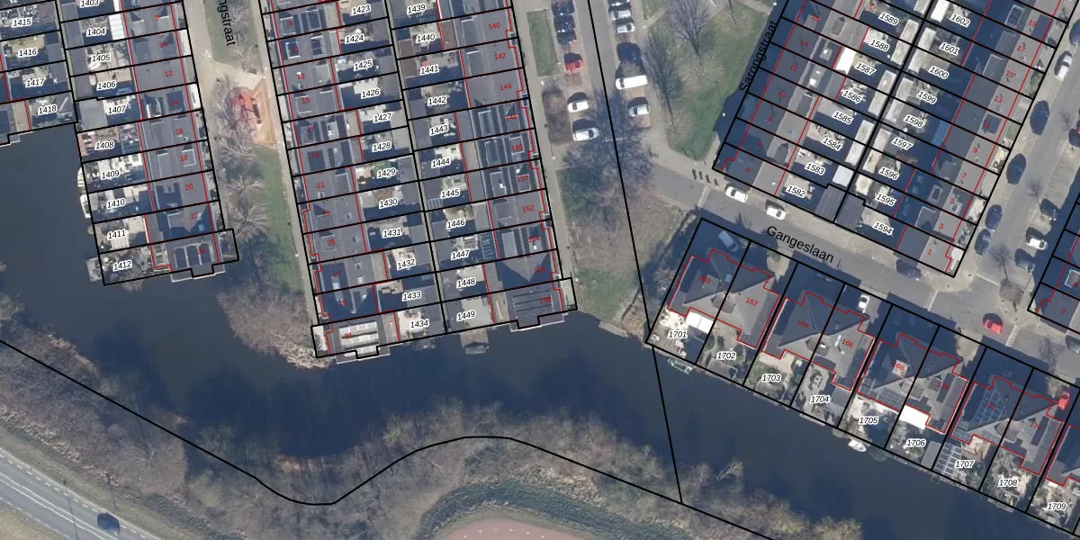 Gangeslaan 156 is gelegen op kadastraal perceel PMR00N1448. Deze kadastrale aanduiding is uniek en wordt gebruikt door het Kadaster om eigendomsrechten en andere zakelijke rechten vast te leggen. Het perceel maakt onderdeel uit van de kadastrale gemeente Purmerend.
