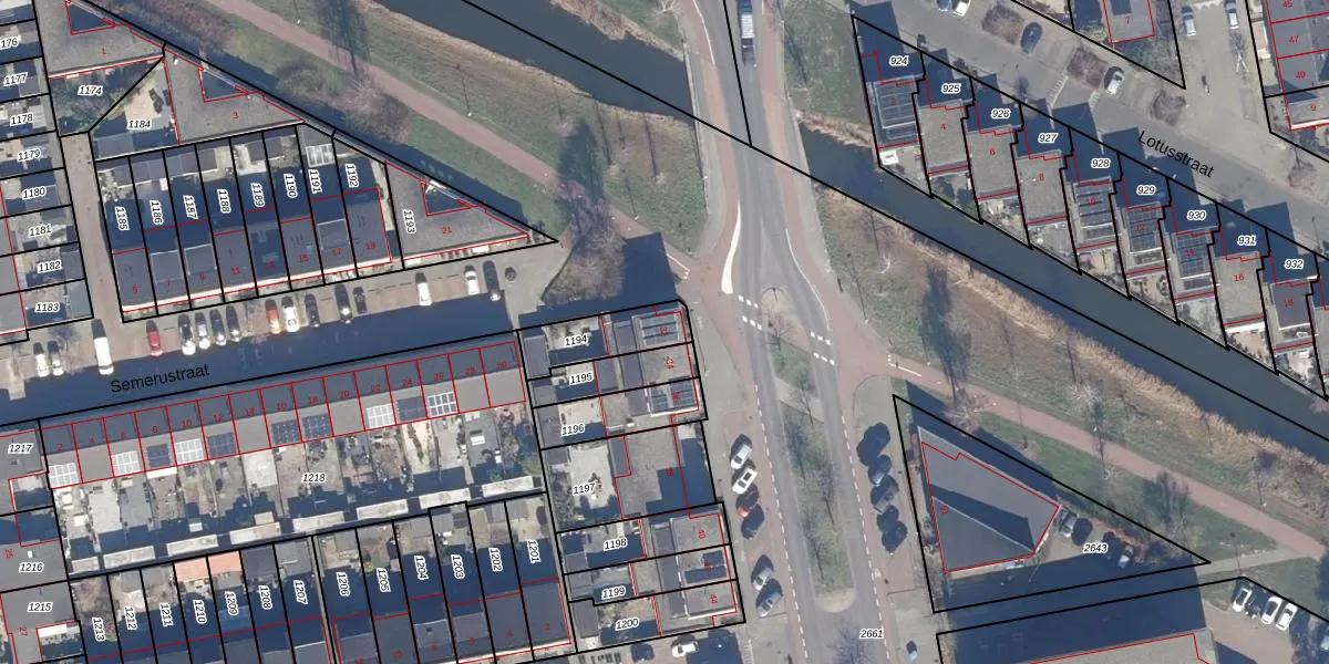 Gebruik de zoekbalk of klik op een perceel voor informatie over de adressen binnen dit perceel.