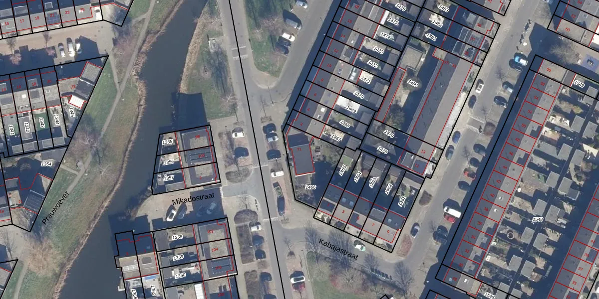 Gebruik de zoekbalk of klik op een perceel voor informatie over de adressen binnen dit perceel.