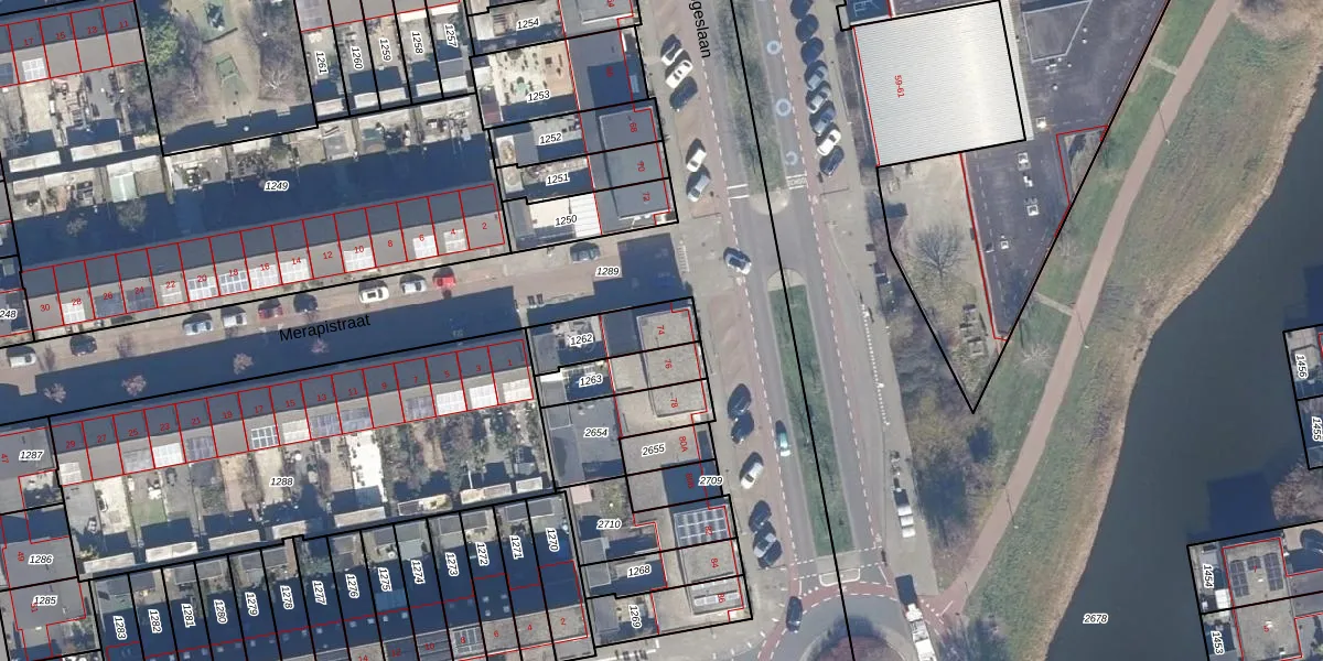 Gebruik de zoekbalk of klik op een perceel voor informatie over de adressen binnen dit perceel.