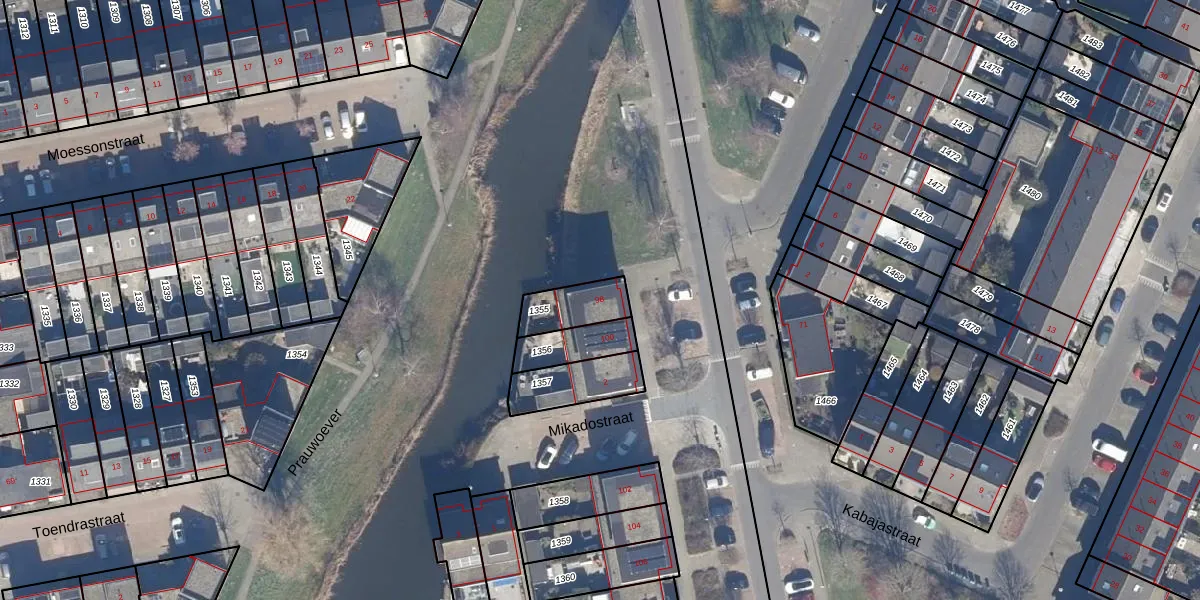 Gebruik de zoekbalk of klik op een perceel voor informatie over de adressen binnen dit perceel.