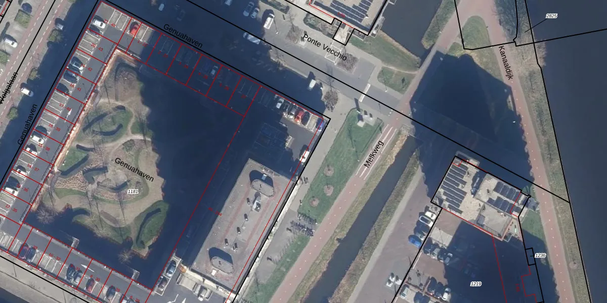 Het perceel waarop Genuahaven 151 staat heeft een oppervlakte van 7825 m². Dit is een zeer groot perceel. De perceeloppervlakte wordt geregistreerd door het Kadaster. Gedetailleerde informatie over de maten van dit perceel kunt u vinden in het rapport Kadastrale kaart met maatvoering van Genuahaven 151.