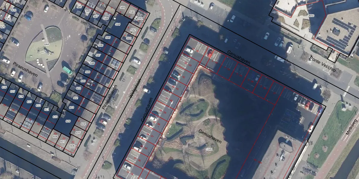 Het perceel waarop Genuahaven 18 staat heeft een oppervlakte van 7825 m². Dit is een zeer groot perceel. De perceeloppervlakte wordt geregistreerd door het Kadaster. Gedetailleerde informatie over de maten van dit perceel kunt u vinden in het rapport Kadastrale kaart met maatvoering van Genuahaven 18.