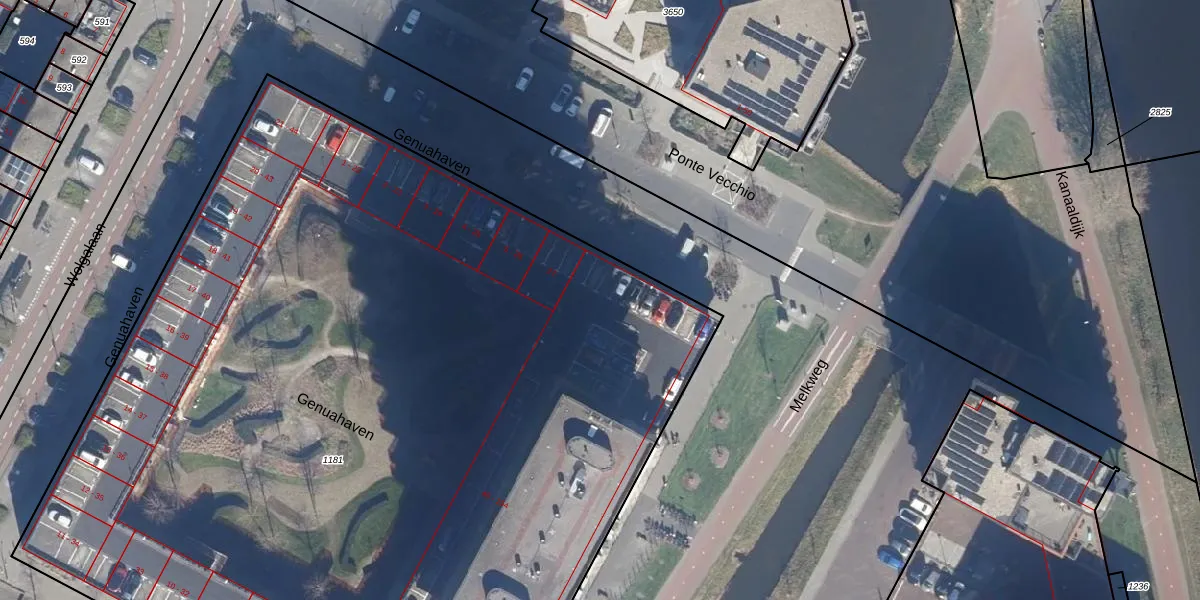 Het perceel waarop Genuahaven 55 staat heeft een oppervlakte van 7825 m². Dit is een zeer groot perceel. De perceeloppervlakte wordt geregistreerd door het Kadaster. Gedetailleerde informatie over de maten van dit perceel kunt u vinden in het rapport Kadastrale kaart met maatvoering van Genuahaven 55.