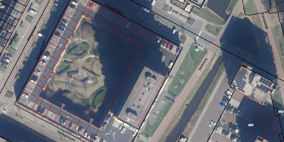 Het perceel waarop Genuahaven 71 staat heeft een oppervlakte van 7825 m². Dit is een zeer groot perceel. De perceeloppervlakte wordt geregistreerd door het Kadaster. Gedetailleerde informatie over de maten van dit perceel kunt u vinden in het rapport Kadastrale kaart met maatvoering van Genuahaven 71.